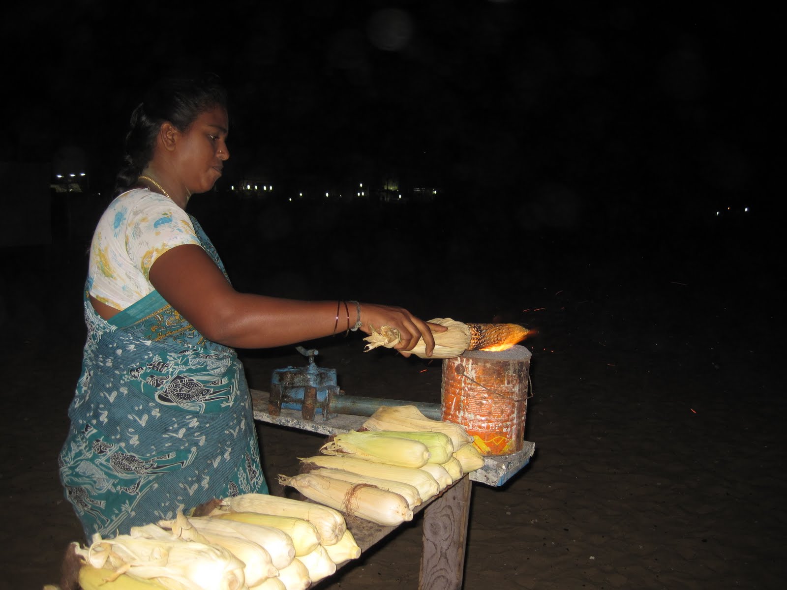 Akash First visit to basant nagar beach,he was very happy to sit with out his car seat i took him to the beach there he saw a lady roasting corn on the fire.we all enjoyed a lot.
